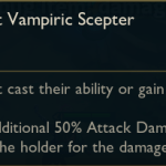 | Corrupt Vampiric Scepter | “This holder cannot cast their ability or gain mana. Attacks deal an additional 50 percent attack damage as physical damage and heal the holder for the damage dealt.” |