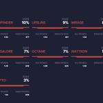Loba’s yet to be featured in the statistics, since there isn’t enough data. Revenant and Crypto, two of the latest legends to join Apex, are at the bottom of the barrel with four and three percent pick-ratios respectively.