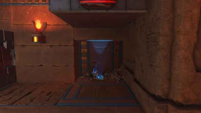 As for the Lara Croft Bot, she is located in the Hieroglitch Pyramid level in Camo Cosmos. She’s one of the hidden Bots in the area, and you’ll need to continue through the level until you enter a sidescrolling portion with stones that drop. At the very end of the tunnel is a blue X mark you can spin-attack down.