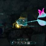 At this point, you could just leave the cave and go back to Ofryc. But that wouldn’t be any fun, would it? As you exit the Godless executioner’s chamber, there’ll be a cave path to your right which you can climb up, helping you go towards that B marker to find the Aedyrans. At the top, you’ll notice a glowing purple crack in the ground, and a gap you can crouch through just on the other side. Go through that gap, then follow the path and drop down through the bigger hole in the cave floor.
