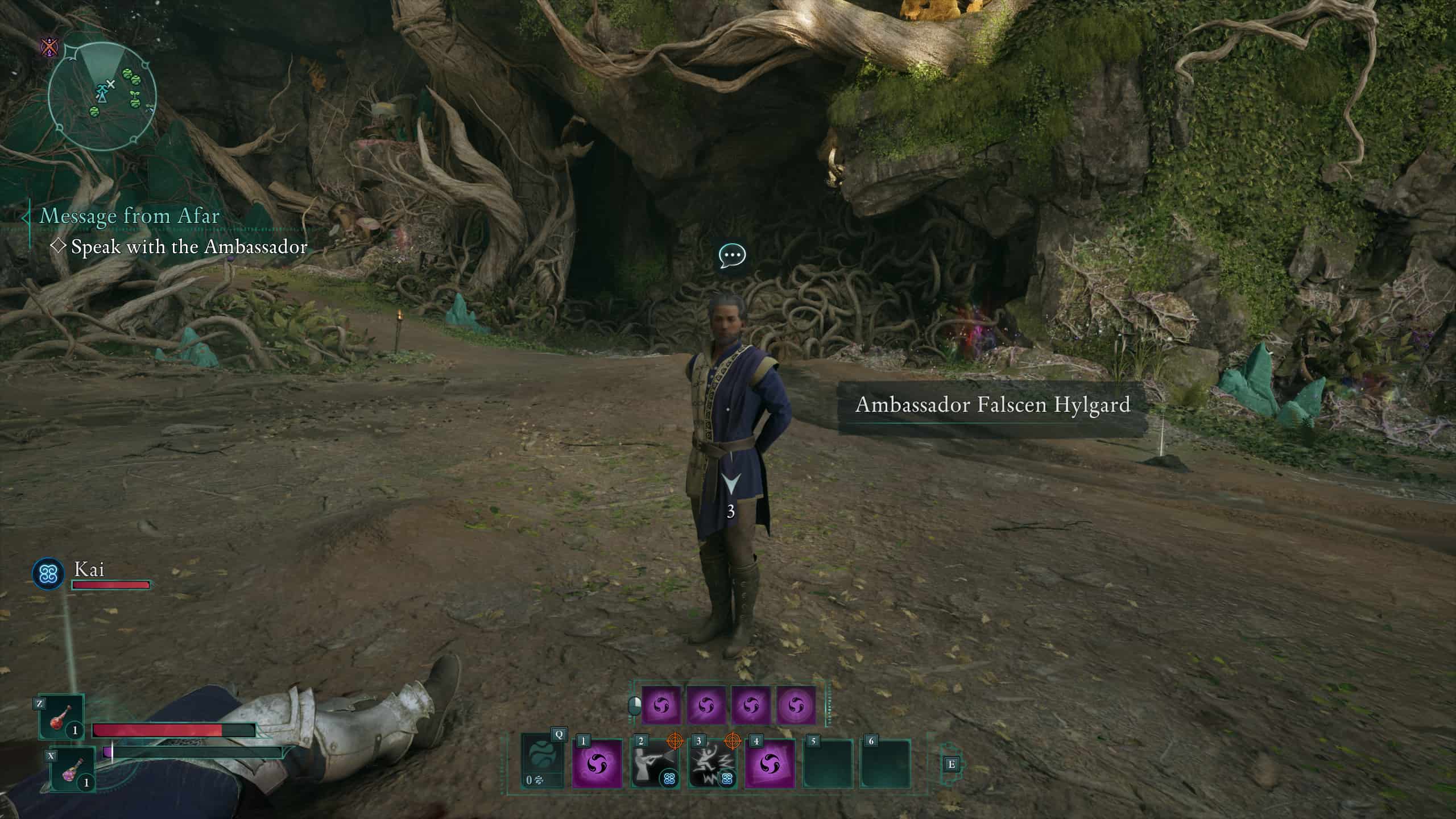 When you get to the Strangleroot, the game should teach you about burning down the vines blocking the entrance, which you can accomplish with a spell, a Magran’s Fury grenade, or by issuing an order to Kai. Once you’ve entered the Strangleroot, there’ll be a couple more bears to take on and some extra loot you can find by poking around the side paths before you happen upon the Ambassador.