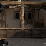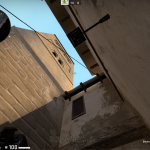 Line up in this spot towards A main, and then line up your crosshair with the wooden beam on the side of the building. This is where the jump-and-throw bind comes in. You’ll have to use that to make it effective.