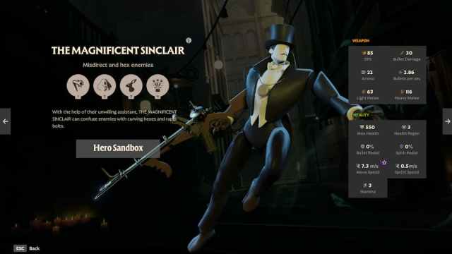 - Spectral Assistant: The Magnificent Sinclair summons an assistant at a target location who attacks each time the hero fires his weapon. Sinclair can also swap positions with his assistant.