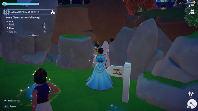 When you find Aladdin, he’s gathering gemstones for a special reason—he wants to share them with WALL-E. He asks for your help collecting some extra gems to make WALL-E happy. You’ll need to mine red, blue, and green gems from across the Valley. Make sure you keep these gems in your inventory so you can hand them over to Aladdin.