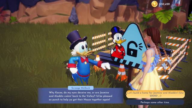Once it’s placed, approach the blue Scrooge McDuck sign in front of the house so you can officially build it. It costs 20,000 Star Coins to make, so if you don’t have enough, you may have to work on acquiring more before you can build it.