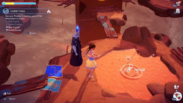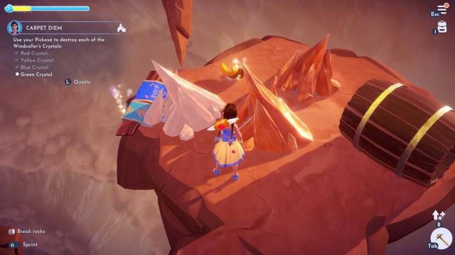 - Use your Pickaxe to destroy each of the Windcaller’s Crystals in Disney Dreamlight Valley