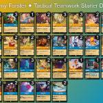 The Tactical Teamwork Amber/Sapphire Starter deck has a strong go-wide strategy with plenty of card draw to prevent the build from running out of gas. Using the seven Dwarves to create a wide board of Characters that synergize with one another, players can then use that board state to interact with the two top-end cards in the Tactical Teamwork deck, The Queen, Commanding Presence, and Christopher Robin, Adventurer.