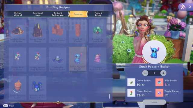 All of the popcorn buckets are very costly to craft, which means you need to gather lots of Buttons across the duration of the Dreamlight Parks Fest event to make the five you need for this task. Accumulating enough resources for each of the five buckets you need generally takes at least three or four days.