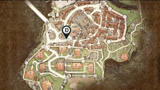 The NPC you need to find is located in Vernworth, which you can return to quickly by venturing to Melve and taking an Oxcart. You can use a Portcrystal to return to the city even quicker, but I recommend saving them for occasions where using an Oxcart isn’t possible.