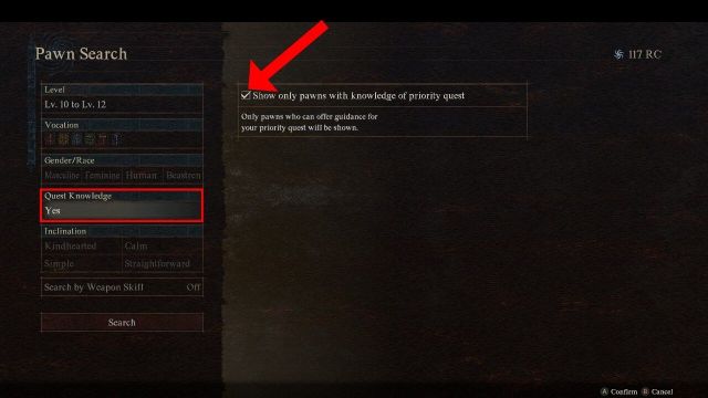 You can get a Pawn knowledgeable about your priority quests by filtering your search at a Riftstone and hiring a priority quest knowledgable Pawn. Find the closest Riftstone to your location, and once you’re there, follow these steps: