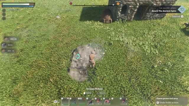 Once you have your Scrappy Pickaxe, pick any spot of land and start digging. You should get enough Dirt in as little as two or three digs.