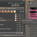 - Click on the small square on the right of the name and select either “Recruit Members” to create your own party or “View Parties that Meet Conditions.”