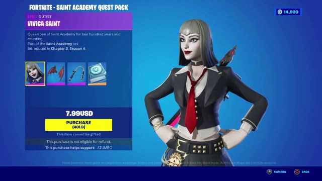 The Vivica Saint skin was released on October 25th, 2022, as part of the Saint Academy set. This Rare skin comes with a harvesting tool and back bling. If you want to sport some wings and get to whipping, this creature’s skin is right for you.
