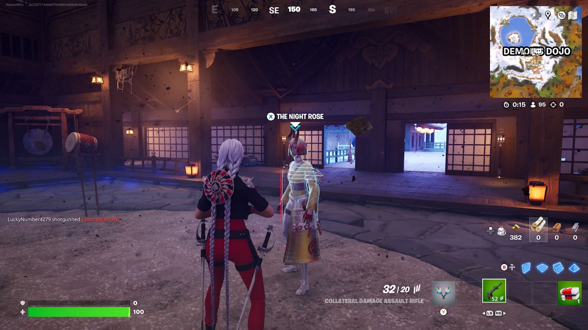 The Night Rose is a lot calmer than she was last season and is walking about the main building at Demons Dojo with Jonesy. She has an SMG for sale, or she can accompany you as you adventure across the island.
