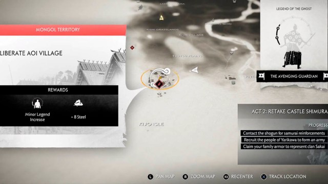 To get this key to unlock the Gosaku Armor in Ghost of Tsushima, kill the Mongol guards in the garden and rescue three hostages. After your heroic deeds, you get the Key of Koshimizu. You’re halfway through completing The Unbreakable Gosaku now.