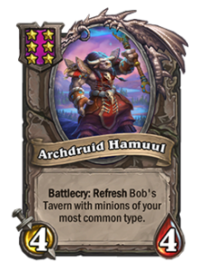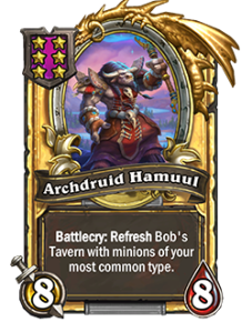 - Old: For the rest of the game, reduce the cost of upgrading Bob’s Tavern by (2) at the end of your turn. → New: For the rest of the game, reduce the cost of upgrading Bob’s Tavern by (3) at the end of your turn.