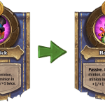 - Old: [Costs 1] Make a minion in Bob’s Tavern Dormant. After 3 turns, get it with +1/+1. → New: [Costs 1] Make a minion in Bob’s Tavern Dormant. After 3 turns, get it with +2/+2.