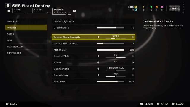 You can play with the field of view settings, motion blur, depth of field, and if the game prioritizes performance over quality for anyone playing Helldivers 2 on consoles. Many Helldivers 2 players noticed reducing the camera shake strength makes it easier to focus on hitting enemies in the middle of a warzone, and this might make it easier to hit targets during a fight. I’ve reduced my camera shake strength to weak to have minor visual effects, but not so much so it impairs my aim.