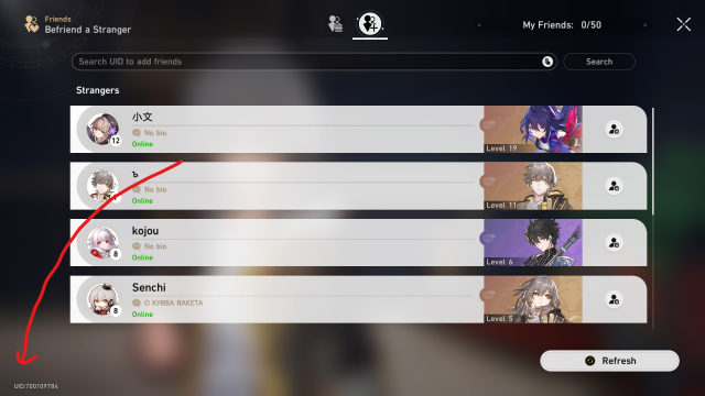 How to add friends in Honkai: Star Rail using a UID number