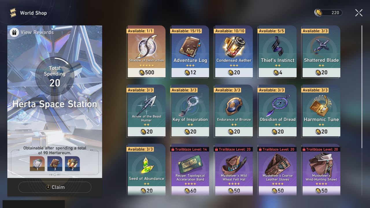 How to purchase one item in the World Shop with Hertareum in Honkai: Star Rail