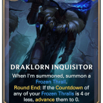 Despite Lissandra’s power level and ability to summon multiple Frostguard Thralls, she does rely on her Draklorn Inquisitor allies to bring them into play at a reliable rate. Eight rounds to wait for a countdown ability is too long in any competitive game and the Inquisitor summoning them four turns sooner will give you the edge needed to threaten midrange and control decks.