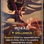 Horazi, an eight-cost Darkin, was the only follower revealed today. The unit has Spellshield as a keyword with 7/7 stats. Horazi also synergizes with Support, growing the supported ally’s stats to equal that of the Darkin unit. The supported unit also gains Horazi’s keywords for that round.