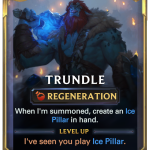 One major example of this was Lissandra when she was released back in Empires of the Ascended. Not only could Trundle protect the user against aggressive and midrange opponents, but his Ice Pillar gave access to an eight-mana unit to repeatedly play and help level Lissandra.