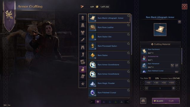 How to craft gear using Rare Lithographs in Throne and Liberty