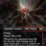 Valgavoth, Harrower of Souls isn’t the most powerful Elder Demon in MTG, but the Legendary creature is an ideal commander in a build that punishes opponents when life points are lost.