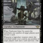 The five Legendary Enchantments are based on the five Legendary creatures that joined Oko’s crew on the plane Thunder Junction: Tinybones from Dominaria, Rakdos from Ravnica, Vraska from Ravnica, Kellan from Eldraine, and Annie from an unknown MTG plane.