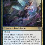 Casting spells from Graveyard is the main theme for the Blue and Black MOM Draft archetype. Invasion of Amonkhet helps get cards in the graveyard through self-mill strategies while Halo Forager can cast them from the graveyard.