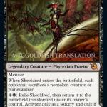 Each MOM Praetor has a passive ability attached to the front side of the card. And each has a paid activation cost required for the Praetor to Transform into a Saga. The Saga’s chapters are meant to end matches. But they are vulnerable to removal as well. Should a Saga complete itself, it Transforms back into the Praetor front side of the card.