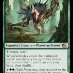 - Passive: When Vorinclex enters the battlefield, search your library for up to two Forest cards, reveal them, put them into your hand, then shuffle