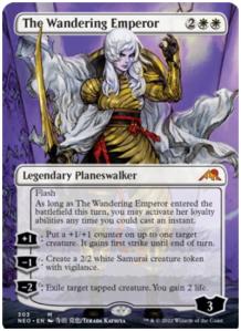 Slotting into Mono-White Aggro builds as well as Azorius Control decks, The Wandering Emperor has left her mark on the MTG Alchemy meta. She sets herself apart from other NEO planeswalkers in that she has Flash, along with three planeswalker abilities that support a variety of Magic archetypes.