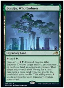 Typically only one copy of each NEO legendary land is played in the main deck, providing immense value via the MTG Channel mechanic or as a much-needed untapped land upon entering the battlefield.