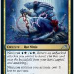 Creatures with Ninjutsu should have solid abilities and a mana cost that won’t tap out all your mana. Prosperous Thief has a Ninjutsu of 1U, is a 3/2, and has an ability that creates a Treasure token whenever a ninja or rogue deals combat damage to an opponent. Moon-Circuit Hacker has a Ninjutsu cost of U and draws a card upon dealing combat damage.