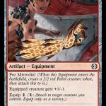 Equipment is a major theme for Red in ONE. Historically, Equipment struggles in Magic because of the expensive Equip costs. Generally, there will be much better uses for your mana than investing three mana to attach equipment onto a creature.