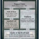 Dungeons are found within the token slot of AFR booster packs and Limited players don’t have to worry about drafting them. Players can’t destroy a dungeon in play since it acts similar to an emblem. Movement through a dungeon is tracked with a counter and it’s the player themselves who are in a dungeon, not a creature or character from AFR.
