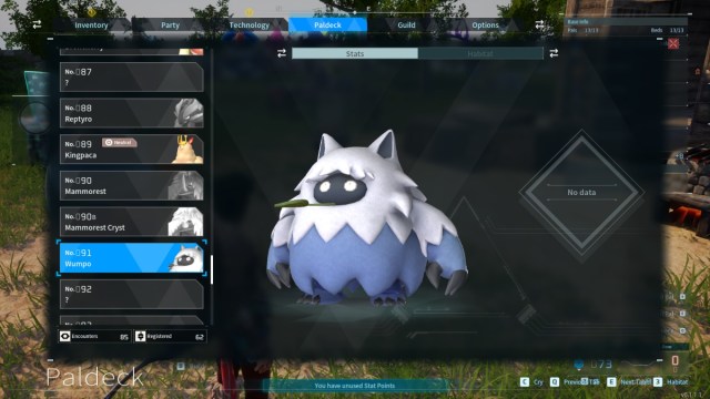 Speaking of versatility, Wumpo is a must-have pick for an endgame base and the best Lumbering Pal in Palworld. This yeti is a pure Ice type with Lumbering Three and an incredible Transporting level of four. This makes Wumpo one of the most efficient Lumbering Pals in the game—it can quickly go from cutting down trees to moving high-priority goods to the right chests and having the carrying capacity to do so. Wumpos are only in the No. Two Wildlife Preserve, located north of Mount Obsidian, but their high level and the hostile security on the Preserve make catching these Pals a chore.