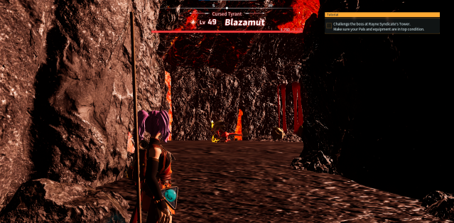 Once you enter the cave, you need to travel quite a bit to reach Blazamut. There’s only one way forward, though, so you don’t need to worry about getting lost. Also, keep in mind that if you’re visiting the desert region for the first time, you should craft and wear a Tropical Outfit to prevent heat damage.