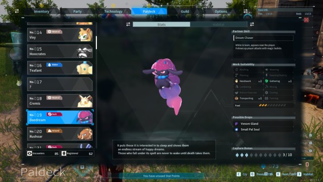 Another Pal worth grabbing as soon as possible is Daedream, the perfect addition to your party whenever you know you’ll be drawn into combat. Its Partner Skill is a lifesaver.
