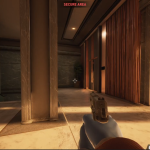 There is also a security guard with a blue swipe pass in his back pocket. His card will open the security room, which can be downstairs or upstairs next to the lift. These two guards move around like crazy, so they might not be in the same spots for your playthrough. The one with the hackable phone wanders around the whole building. But he does make his way back upstairs, so if you’re patient, you’ll be able to hack with fewer people around.