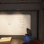 Once you’ve got him in his office, throw him against the wall with the eye scanner. This is next to the vault and is hard to miss. Make sure you tie his hands so he can’t run away, then look at the whiteboard on one of the walls in the vault.