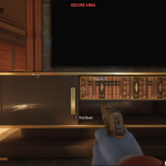 If, like me, you’ve had the area change after many unsuccessful attempts, it will be where the security camera room once was. Once you’ve scanned the QR code, you can go into the filing room. The red keycard will be in the filing cabinet to the left of the door as you enter. Now you have the keycard, head back upstairs.