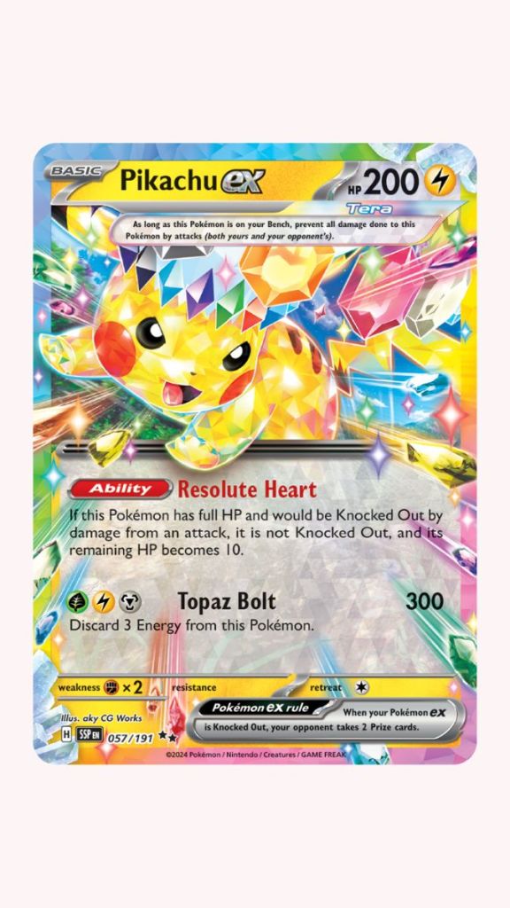 Pikachu ex is one of the most anxiously awaited Surging Sparks cards, largely due to Resolute Heart acting as a cheat-death mechanic.