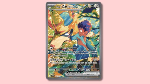 With a rich color scheme and ethereal light effect, this card is a sight to behold. The variants of Hop’s Zacian ex have already garnered a lot of hype in the collector’s community, with this Special Illustration Rare standing out as a must-have for collectors.