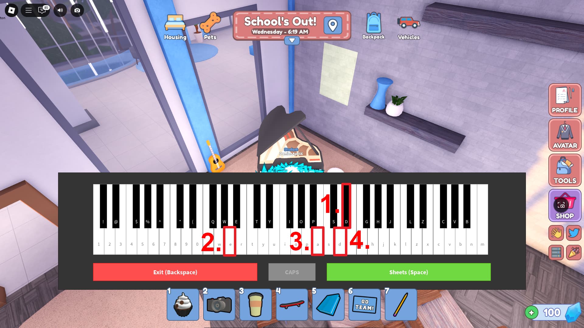 When a text pop-up appears, leave the History classroom and go across the hallway to the Music classroom. There, interact with the piano in the corner and play out the word “Dead” using the piano keys. You can use your keyboard as well, but be mindful of the capitalized “D” at the start.