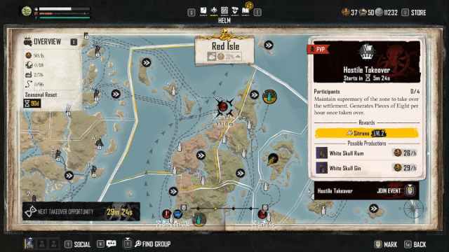 Keep an eye out on the Helm’s map. As soon as the event appears, join it and sail to the target location. There’s only one Legendary Heist per Takeover opportunity, and each Heist allows up to three players. If the slots are full, you have to wait until the next event reset.