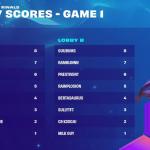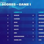 Halfway through day one at the NA Regional Finals, Dishsoap was sitting atop the leaderboard with two lobby wins. Close behind Dishsoap were Ramblinnn, Rainplosion, and Robin. Both Ramblinnn and Rainplosion also had two lobby wins heading into game four.