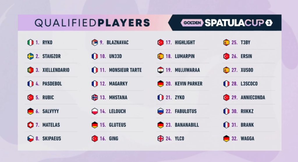 Having only one bottom-four finish all day, Lumarpin squeezed out a GSC title win over Mujjiwaraa with 38 points. The win earned Lumarpin a direct invite to the Rising Legends finals. Spain had three players make the final day of the EMEA Golden Spatula Cup, with Lumarpin and Xus0o taking first and third overall.
